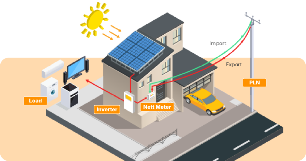 Sistem panel surya memungkinkan Anda memproduksi listrik sendiri dari energi matahari. Pada sistem on-grid, penggunaan listrik dari PLN dapat ditekan pada siang hari. Pada sistem hybrid atau off-grid, kemandirian energi dapat ditingkatkan sesuai konfigurasi sistem dan kapasitas baterai.