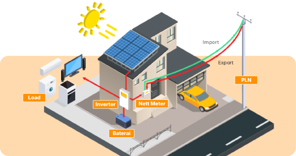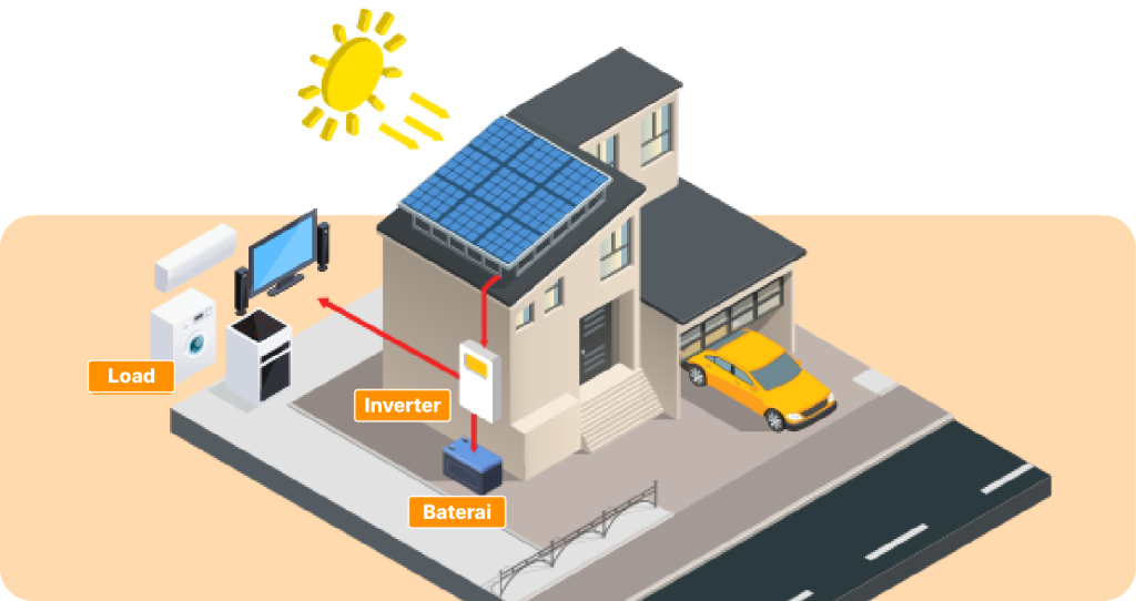 Sistem Off Grid bekerja secara mandiri tanpa terhubung dengan jaringan PLN karena menggunakan baterai sebagai penyimpanan energi utama.